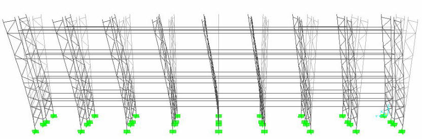 Σχ.1 Μετακινήσεις διπλής σειράς ραφιών λόγω σεισμού χωρίς αντισεισμική ενίσχυση
