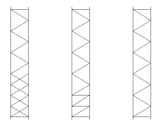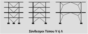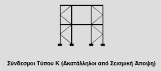 Ελληνικός Αντισεισμικός Κανονισμός – Παράρτημα Γ Ειδικοί κανόνες εφαρμογής για φέροντα στοιχεία από χάλυβα Σ.Γ.5.2 Διαγώνιοι Σύνδεσμοι [3] Σύνδεσμοι τύπου K, με σημείο τομής των διαγωνίων σε ενδιάμεσο σημείο, του ύψους των υποστυλωμάτων, απαιτούν την συμμετοχή του, υποστυλώματος στον μηχανισμό διαρροής και προκαλούν εξαιρετικά, δυσμενείς επιρροές 2ας τάξεως, με συνέπεια να μην προσφέρουν, δυνατότητα πλάστιμης συμπεριφοράς (q = 1.00). H χρήση τους επιτρέπεται, μόνο σε περιοχές σεισμικότητας I και για κατασκευές σπουδαιότητας Σ1.